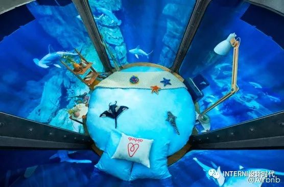 巴黎水族馆的鲨鱼屋, 鲨鱼屋位于巴黎水族馆下十米深处,被三百万升的海水包围。而唯一将房客们与35条尖牙利齿的鲨鱼隔开的只有一层玻璃罩,让房客们360度透明无死角地观赏鲨鱼。
